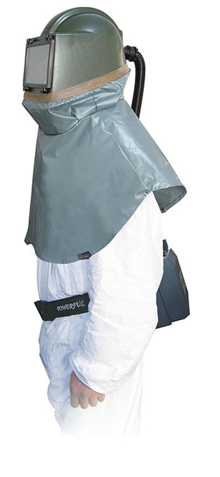 PRF-102RPS1is specially designed,helmet with tippet integration. The tippet materials is nylon with PVC composite. Helmet materials is glass fiber reinforced with PP composite. The product materials light and sandblasting shock resistance, corrosion resistance, climate change resistance etc.The helmet provides double-deck wide window. easily changed lens. A breath tube is inside the hood, which supply special air flow that is anti-fog. It can also protect the whole head from dust, sand. The headband is adjustable, light in weight, comfortable in wearing, high in working efficiency. The powered air purifying system can supply purified air into the sand blasting hood consecutively. It is the best choice to provide protection from pneumoconiosis and occupation diseases. Air flow is huge, 170-300L/Min, adjustable (clockwise regulate big flow and anti-clockwise regulate small flow). Battery can supply power 6 to 20 hours consecutive operation, if air flow regulate maximum, the lithium battery can work for 6 hours continuously, while air flow regulate minimum, 20 hours. If work over 6-20 hours consecutively, a backup battery is needed. It will buzz automatically when power is low to remind recharging.
