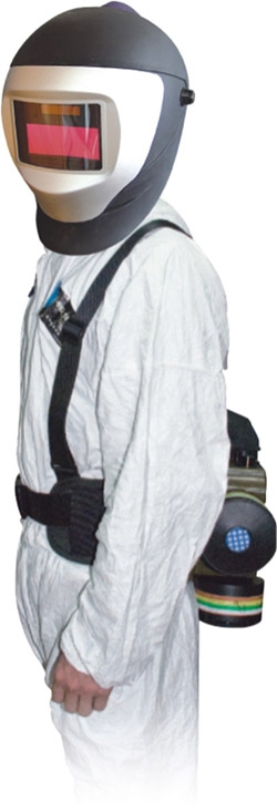 该产品(PRF-103RAD)是一款电动送风过滤式防烟尘防毒呼吸器。主机防水喷溅,经得起严格的清洁消毒要求,可同时使用2-3个过滤罐,具有质轻、佩带舒适、配有舒适宽腰带及双肩带,腰带及肩带可自由调节、符合人体工程学设计,使重量更能平均分布,全身受力、使用方便、它集呼吸防护、面部皮肤及眼睛防护于一体,电焊作业时,护目镜自动变黑,响应时间小于0.1毫秒,遮光系数:9-13(旋钮外调式)。具有质轻、使用方便、密封效果好、过滤精度高,过滤精度0.3微米,大流量160-280L/Min,风量可自由旋钮调节(顺时针调大风量,逆时针调小风量),6--20小时工作电池(可充电聚合物锂离子电池),调节呼吸器到最大风量时,电池连续供电6小时,调节呼吸器到最小风量时,电池连续供电20小时,如连续工作时间超过6-20小时应配备用电池。电池低电量蜂鸣报警。自上向下气流避免面镜起雾。