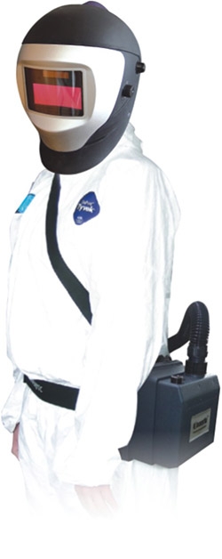 该产品(PRF-102RAD)是一款电动送风过滤式防烟尘防毒呼吸器,它集呼吸防护、面部皮肤及眼睛防护于一体,电焊作业时,护目镜自动变黑,响应时间小于0.1毫秒,遮光系数:9-13(旋钮外调式)。具有质轻、使用方便、密封效果好、过滤精度高,过滤精度0.3微米,大流量160-300L/Min,风量可自由旋钮调节(顺时针调大风量,逆时针调小风量),6--20小时工作电池(可充电聚合物锂离子电池),调节呼吸器到最大风量时,电池连续供电6小时,调节呼吸器到最小风量时,电池连续供电20小时,如连续工作时间超过6-20小时应配备用电池。电池低电量蜂鸣报警。自上向下气流避免面镜起雾。